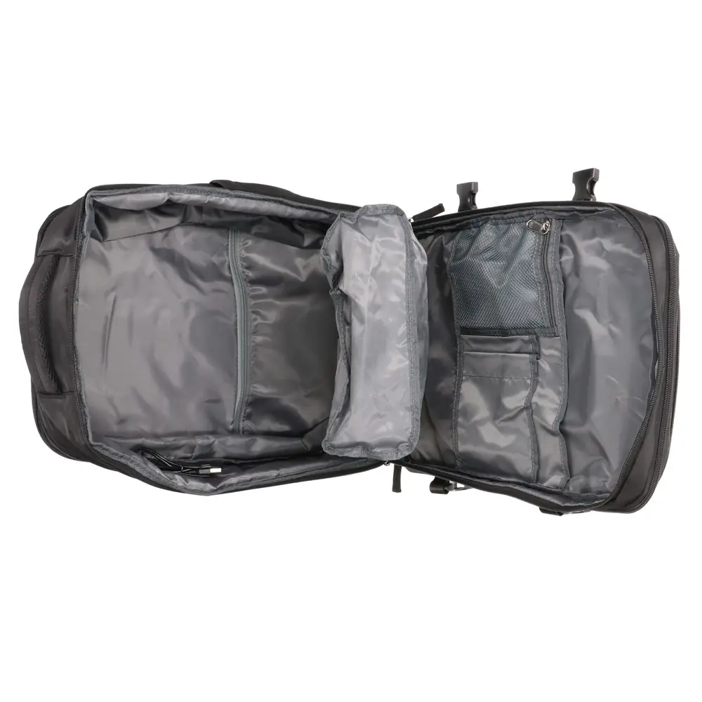 Zamek o szerokim zakresie otwarcia pozwala na pełny dostęp do zawartości, co eliminuje konieczność uciążliwego przeszukiwania dna plecaka. Dzięki konstrukcji rozkładanej o 180 stopni z łatwością ułożysz odzież i akcesoria, zachowując nienaganny porządek podczas każdej podróży. Przemyślane przegrody wewnętrzne sprawiają, że segregacja tabletu, dokumentów czy drobiazgów staje się intuicyjna i szybka.