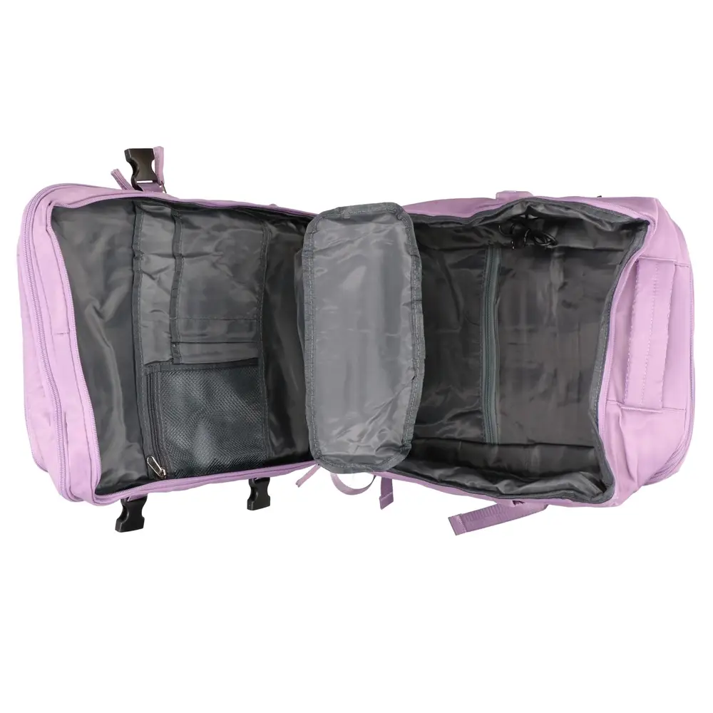 Specjalny pas umieszczony na plecach umożliwia stabilne zamocowanie plecaka na rączce walizki transportowej. Takie rozwiązanie odciąża Twoje ramiona podczas przemieszczania się po terminalu, oferując większą swobodę ruchów. Miękkie, oddychające panele na tylnej ścianie dbają o właściwą cyrkulację powietrza, co podnosi wygodę noszenia nawet przy pełnym obciążeniu.