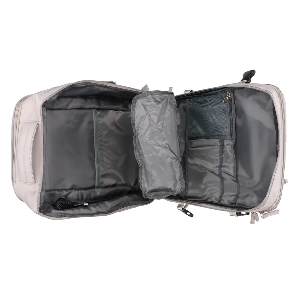 Specjalny pas umieszczony na plecach umożliwia stabilne zamocowanie plecaka na rączce walizki transportowej. Takie rozwiązanie odciąża Twoje ramiona podczas przemieszczania się po terminalu, oferując większą swobodę ruchów. Miękkie, oddychające panele na tylnej ścianie dbają o właściwą cyrkulację powietrza, co podnosi wygodę noszenia nawet przy pełnym obciążeniu.