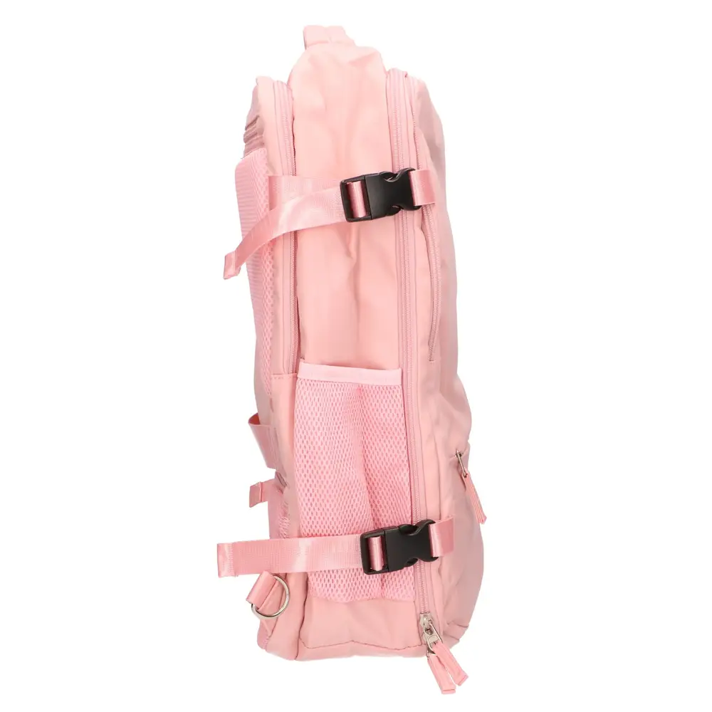 Pojemna komora główna pomieści odzież, obuwie oraz większe akcesoria, dbając o ich bezpieczny transport dzięki systemowi wewnętrznych pasów. Liczne mniejsze kieszenie przyczyniają się do porządku wśród drobnego bagażu, takiego jak szczoteczka do zębów czy słuchawki. Zastosowanie trwałych materiałów o gładkiej strukturze pomaga w utrzymaniu estetycznego wyglądu plecaka nawet przy intensywnym użytkowaniu.