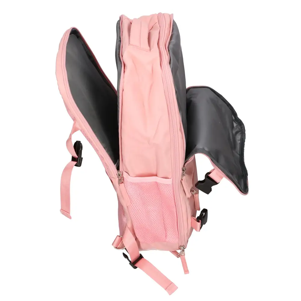 Wnętrze plecaka oferuje dużą pojemność z wyraźnym podziałem na strefy, co pomaga w błyskawicznym odnalezieniu potrzebnych rzeczy. Specjalna wodoodporna przegroda chroni resztę bagażu przed wilgocią z kosmetyków, a dedykowana kieszeń na laptop stabilizuje sprzęt elektroniczny podczas transportu. Dodatkowe skrytki i boczna kieszeń na wodę sprawiają, że każdy przedmiot ma swoje wyznaczone miejsce.