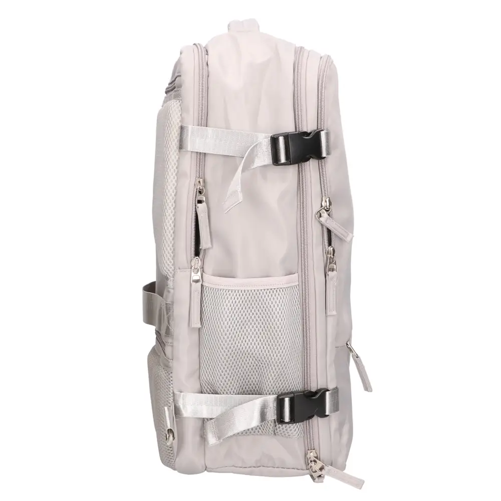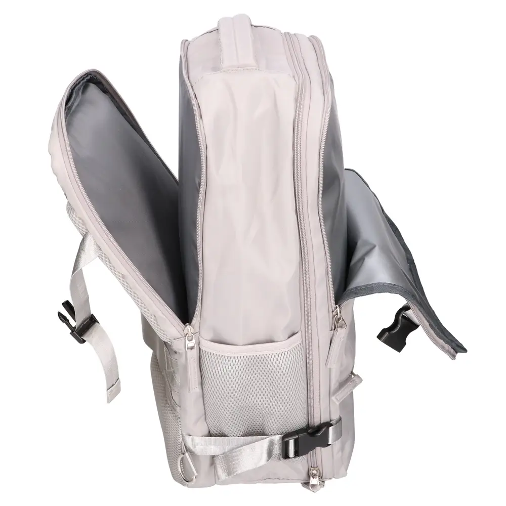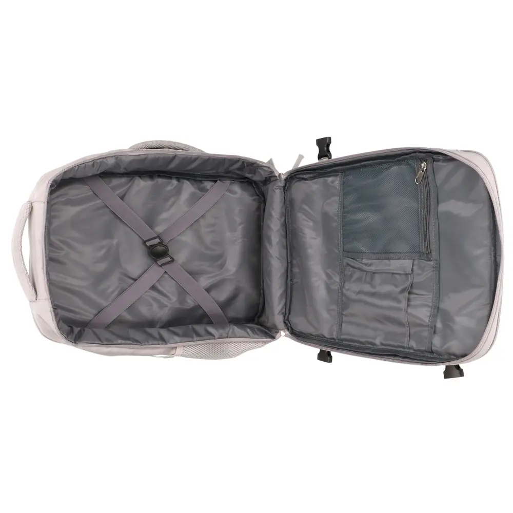 Specjalny zamek błyskawiczny 180 stopni sprawia, że plecak otwiera się całkowicie na płasko, co znacząco przyspiesza układanie ubrań. Taka budowa umożliwia spakowanie rzeczy nawet na 5-dniowy wyjazd, zachowując przy tym wymiary akceptowane w kabinie samolotu. Wewnętrzne pasy kompresyjne stabilizują zawartość, zapobiegając przemieszczaniu się odzieży w trakcie podróży.
