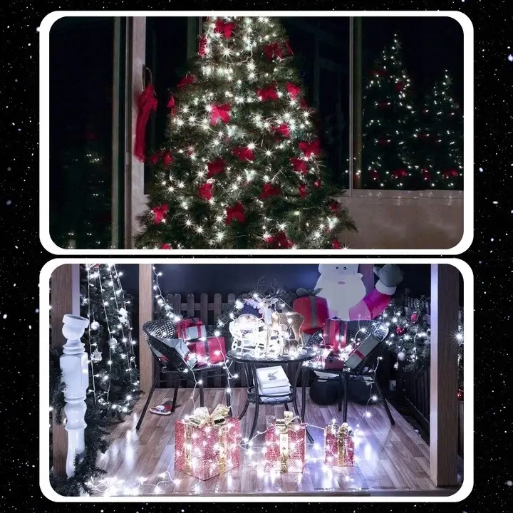 Zastosowanie 100 diod LED na 10-metrowym odcinku świecącym oferuje intensywne, zimne białe światło. Ta barwa jest szczególnie pożądana do tworzenia efektu mroźnej, krystalicznie czystej atmosfery kojarzącej się ze skandynawskim stylem lub zimową scenerią. Światło to dba o to, by każda dekoracja, od choinki po taras, zyskała na elegancji i wyrazistości. Całkowita długość zestawu wynosi 10,5 metra, a minimalny kabel zasilający (0,5 m) dodatkowo ułatwia ukrycie zasilania bateryjnego.