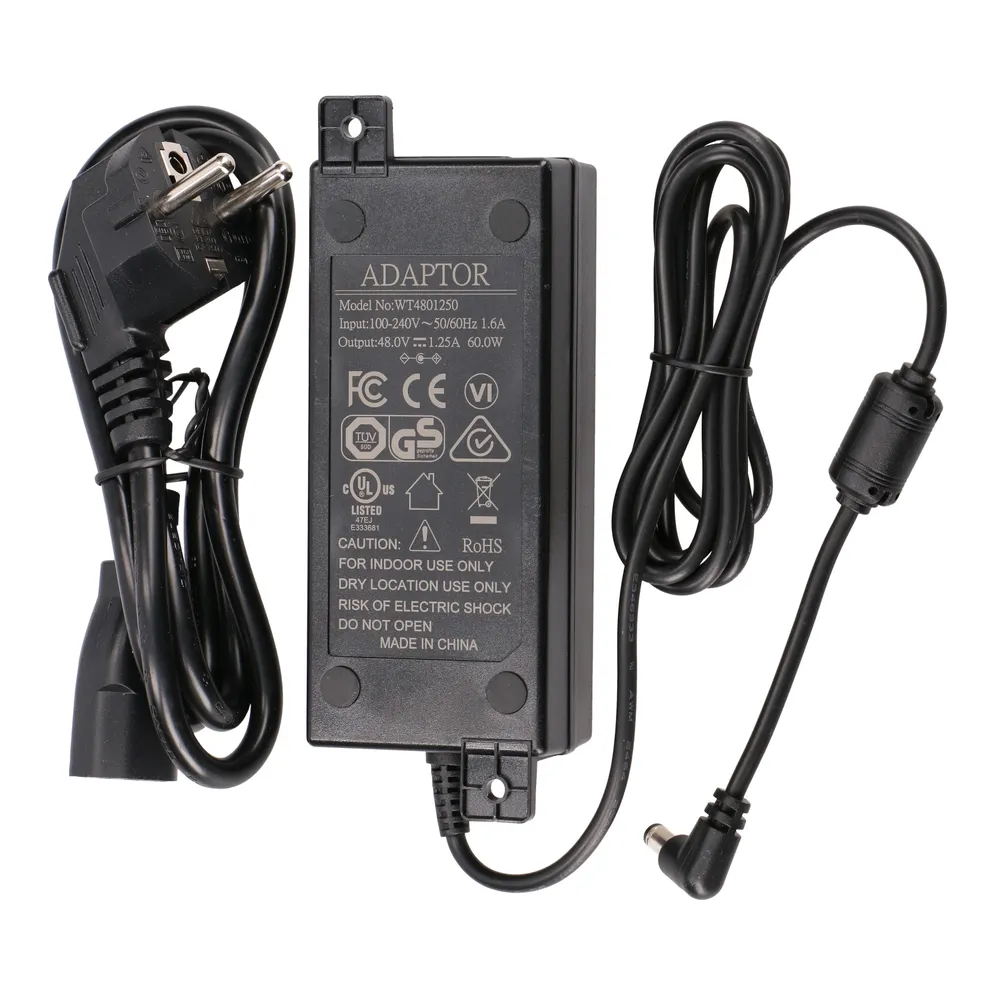 Dzięki szerokiemu zakresowi napięcia wejściowego (100~240V 50/60Hz) zasilacz może być używany w różnych regionach. Parametry wyjściowe 48V i 1.25A (60W) zapewniają stabilne zasilanie dla szerokiej gamy urządzeń PoE. W zestawie znajduje się kabel zasilający C14 AC (dostępne różne wtyczki regionalne), co ułatwia instalację. Zasilacz PS-48V60W idealnie sprawdza się w zastosowaniach takich jak zasilanie przełączników sieciowych, przełączników Ethernet oraz PoE Injectorów.