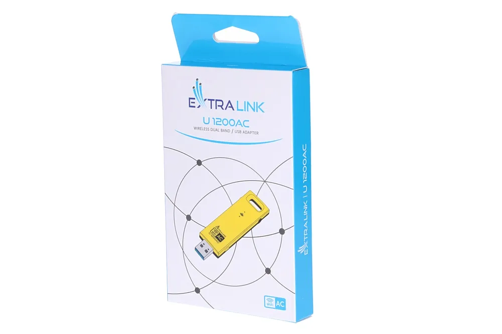 Extralink U1200AC to adapter USB sieci bezprzewodowej Wi-Fi. Urządzenie działa w paśmie częstotliwości Dual Band 2,4GHz oraz 5GHz z maksymalną przepustowością 1200Mb/s. Adapter działa w standardzie sieci 802.11ac. Kompatybilny ze złączem USB3.0.