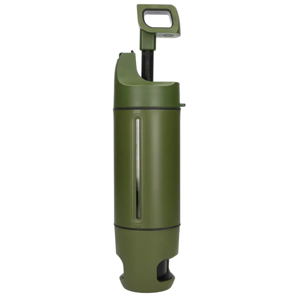 Urządzenie wyposażono w ręczną pompkę, która działa bez potrzeby użycia prądu czy baterii. Mechanizm ten umożliwia pobór wody nawet z płytkich strumieni, co bywa utrudnione w przypadku innych rozwiązań. Brak elektroniki sprawia, że sprzęt jest gotowy do pracy w każdej sytuacji awaryjnej. Taka konstrukcja pomaga w przetrwaniu w trudnych warunkach, uniezależniając Cię od infrastruktury cywilizacyjnej. To gwarancja dostępu do pitnej wody zawsze, gdy tego potrzebujesz.